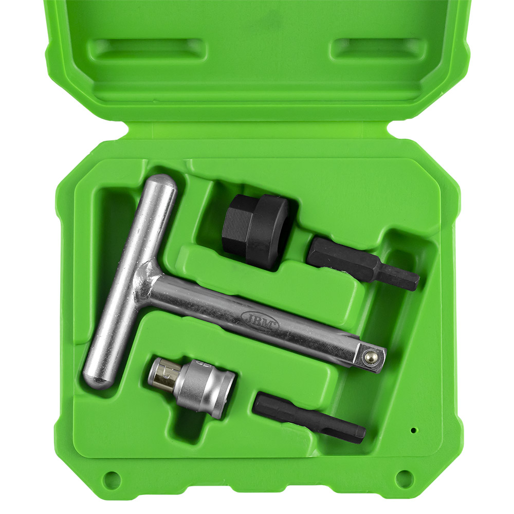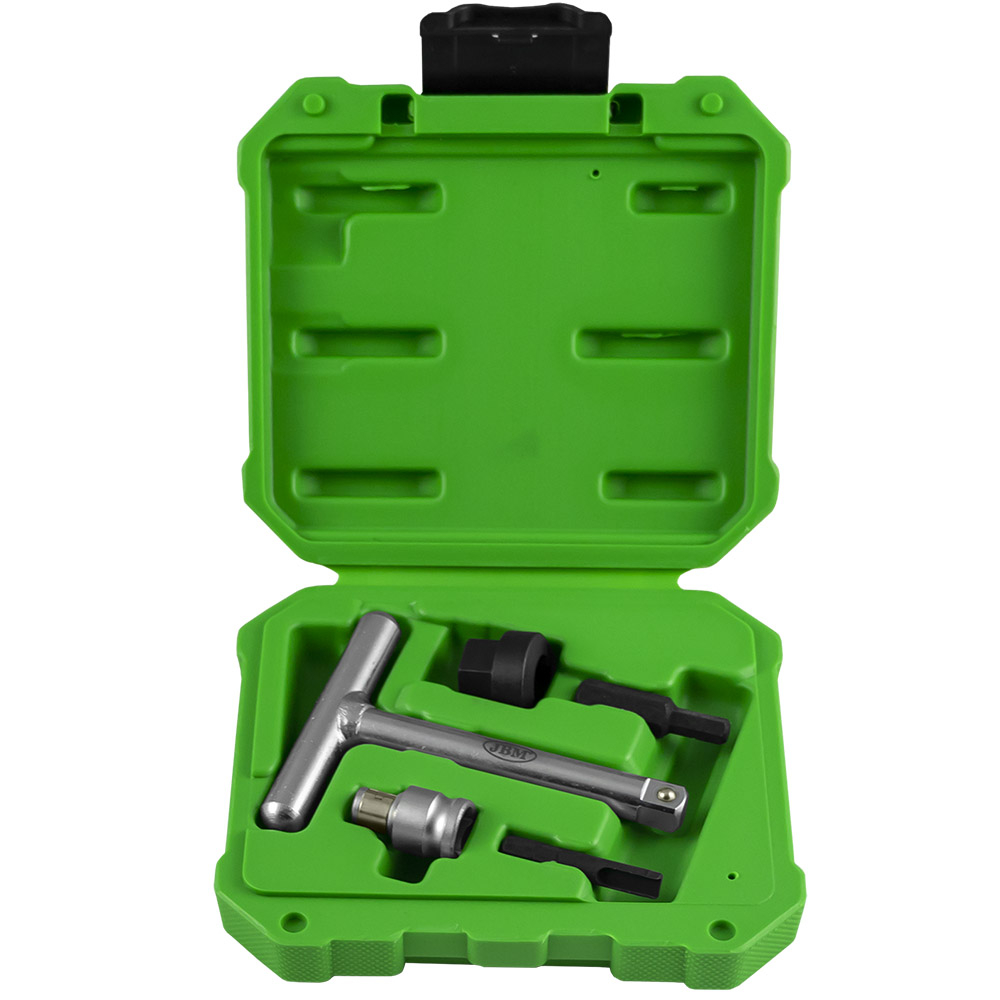 CONJUNTO EXTRACTOR DE BUJÕES DE CÁRTER DE PLÁSTICO 31,00 € Desconto de %. Partilhar O produto encontra-se sem stock. Ref: 53473 CONJUNTO EXTRACTOR DE BUJÕES DE CÁRTER DE PLÁSTICO nclui: - 1 chave em forma de T 3/8" - Adaptador - adaptador de 3/8" para cabeças de 10 mm- Bocal hexagonal de 10 mm e quadrado de 1/4" - Bocal sextavado de 10 mm para o plugue do cárter VAG - Capacidade de 3/8 " para extração dos plugues do cárter Compatível com plugues OEM: - OEM 1830727 (código 53538) - OEM 11137605018 (código 53537) - OEM 06L 103 801 (código 13969) - OEM 9801444780 - OEM 1871598 Marca JBM Características